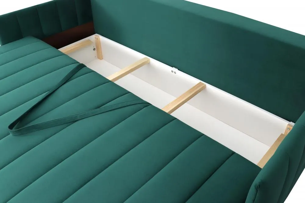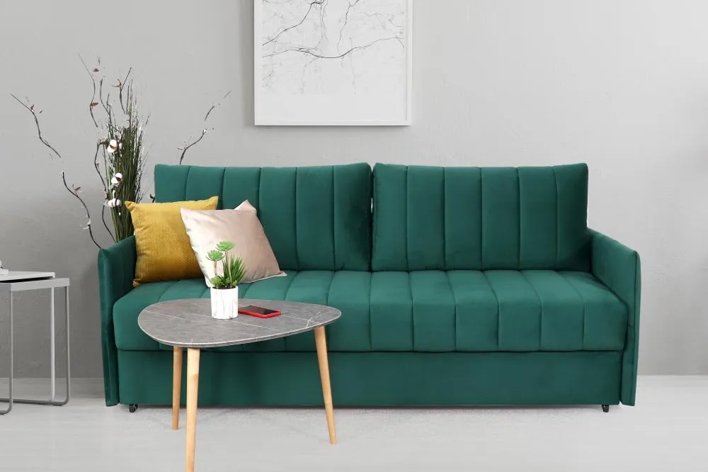 <virtues> Комфортный,удобный </virtues> <comment>Диван очень комфортный.На нем удобно как сидеть ,так и спать.Дискомфорта во время отдыха нет.В зеленом цвете отлично вписался в комнату.</comment>