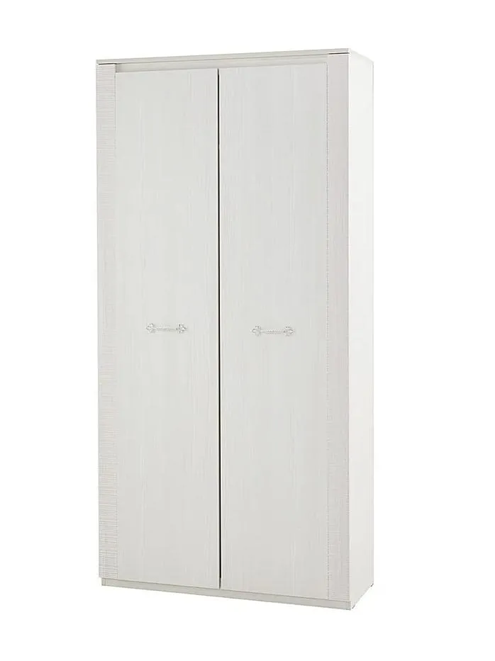Двухдверный шкаф "Элана" с распашными дверцами имеет два отделения: отделение для белья с четырьмя съёмными и центральной стационарной полкой; платяное отделение со стационарной полкой и выдвижной стальной штангой.