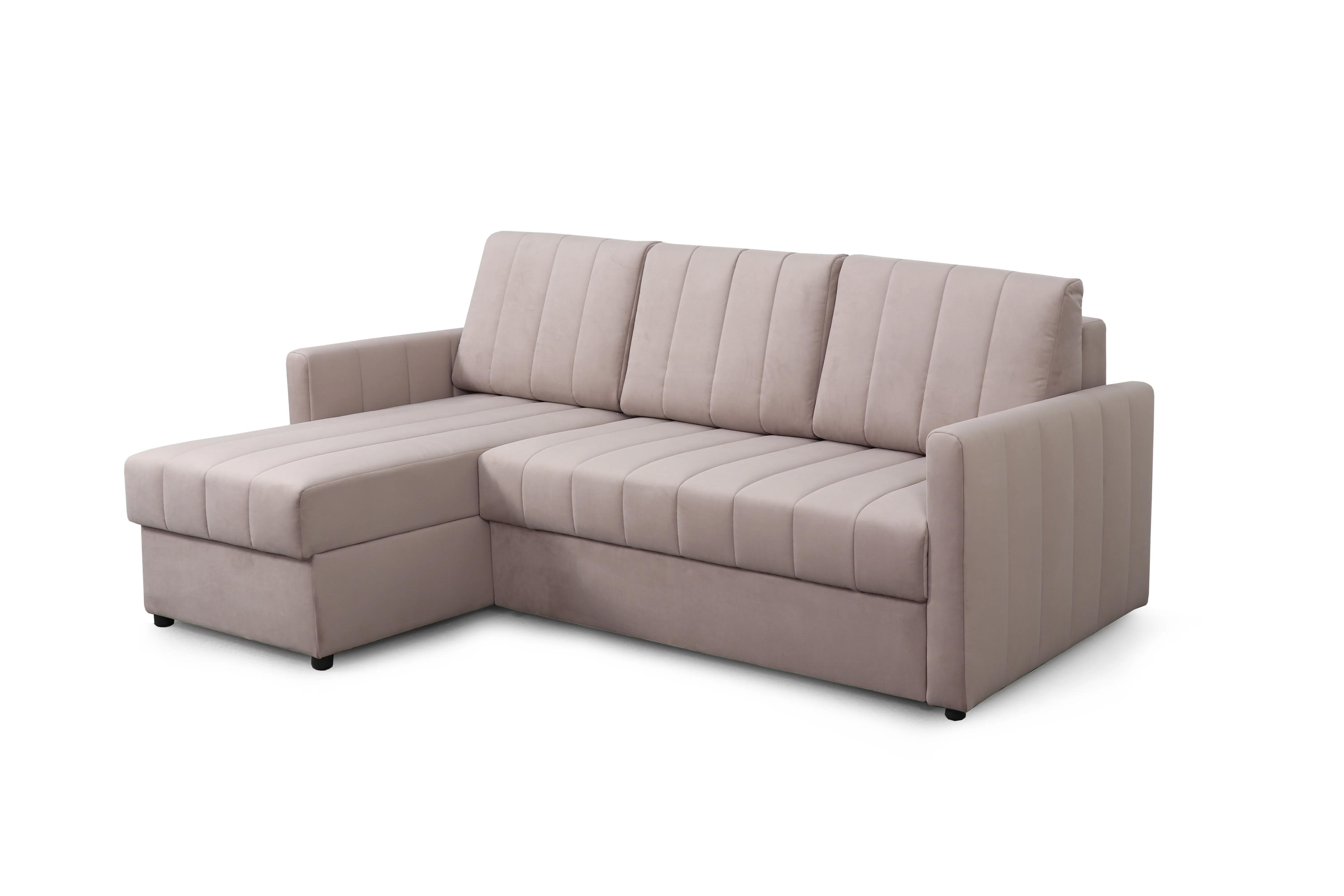 Приспинные подушки, сиденье и подлокотники дивана оформлены модной вертикальной стёжкой в современном стиле.
